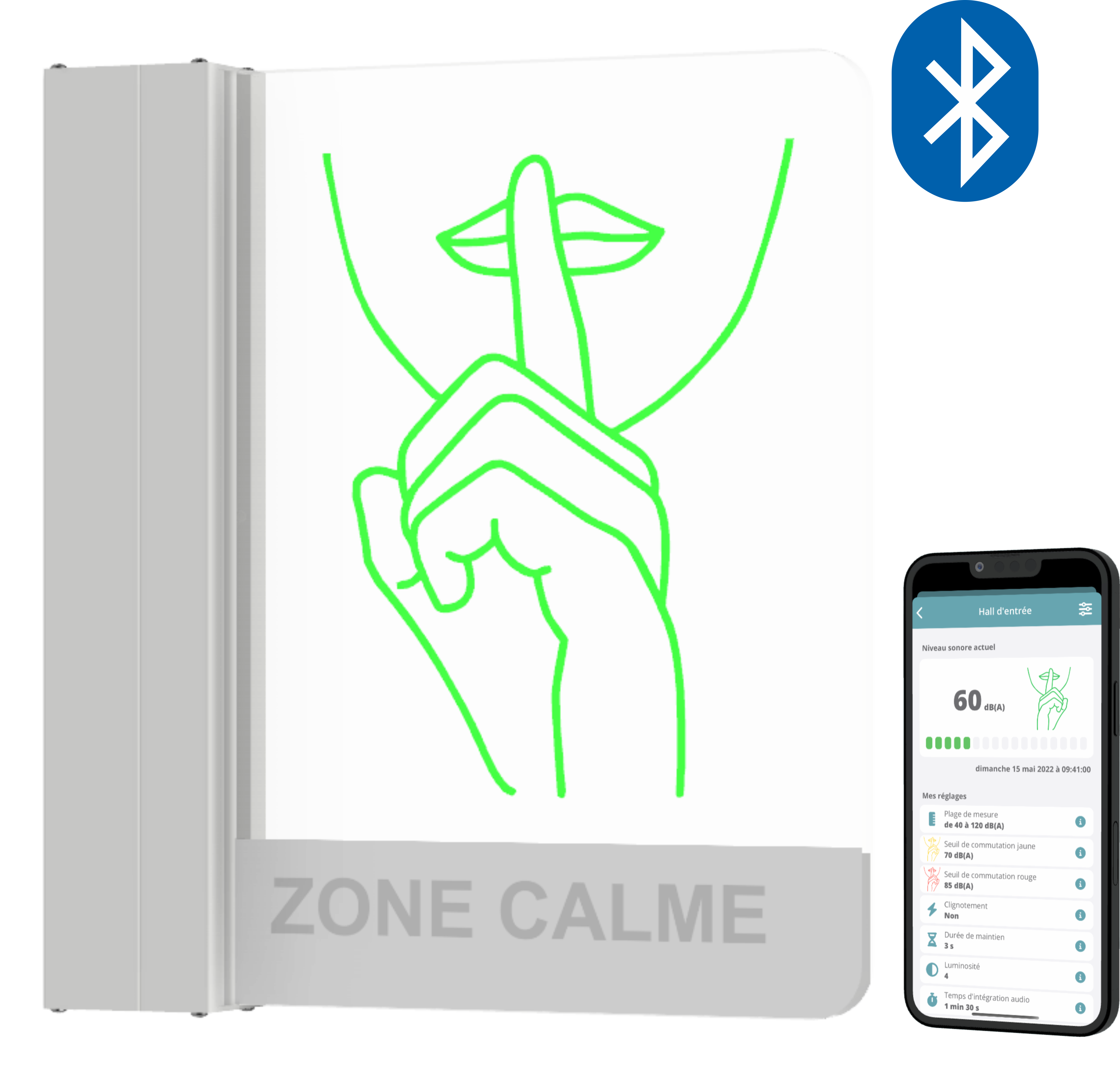 • La visualisation en temps réel du niveau acoustique en dB pondéré A.